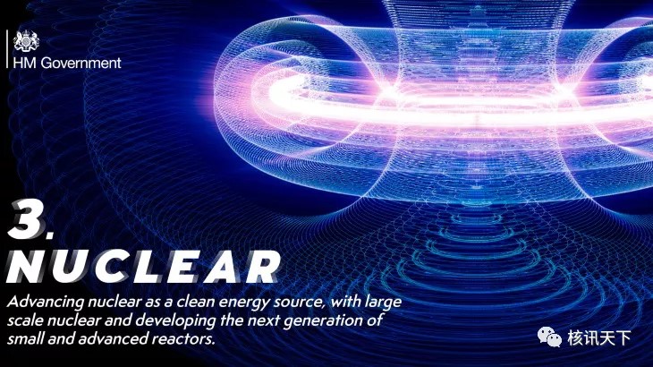 該計劃的第三點是政府承諾發展新的核能,從大型到小型和先進的模塊化反應堆。其中包括投資5.25億英鎊(6.96億美元)“下一代小型先進反應堆”。