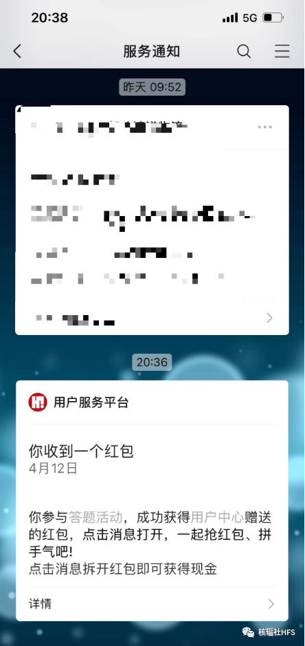 小伙伴們答完題以后,不要忘記回到“服務通知”領取抽到的紅包獎勵哦!