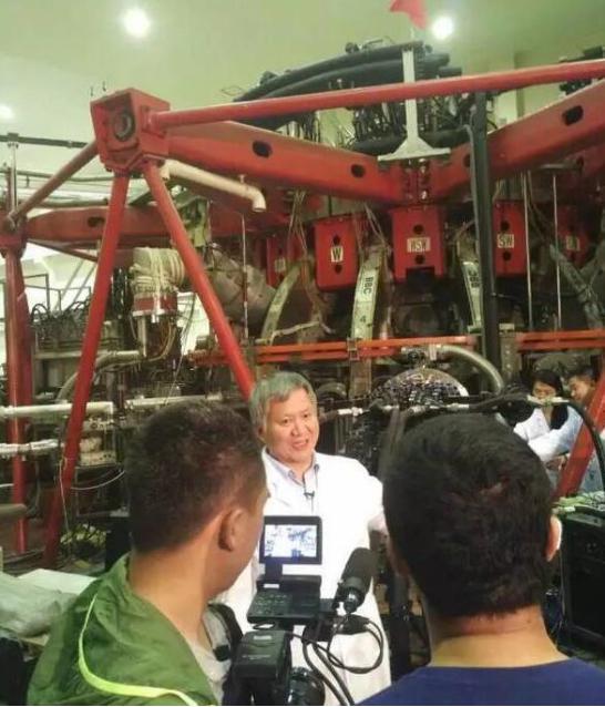 后面像“八爪魚”一樣的機器,是用來模擬太陽上發生的核聚變設備——中國環流器二號A裝置。