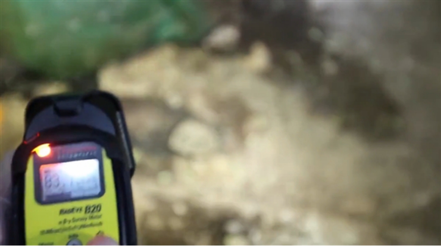 這里是世界上第一顆原子彈進行爆炸試驗的場所,在爆炸中心,小哥發(fā)現(xiàn)了爆炸瞬間高溫形成的玻璃化沙子。檢測發(fā)現(xiàn),這里的輻射劑量為0.8微西弗每小時。而玻璃化沙子的輻射劑量甚至達到了3微西弗每小時!