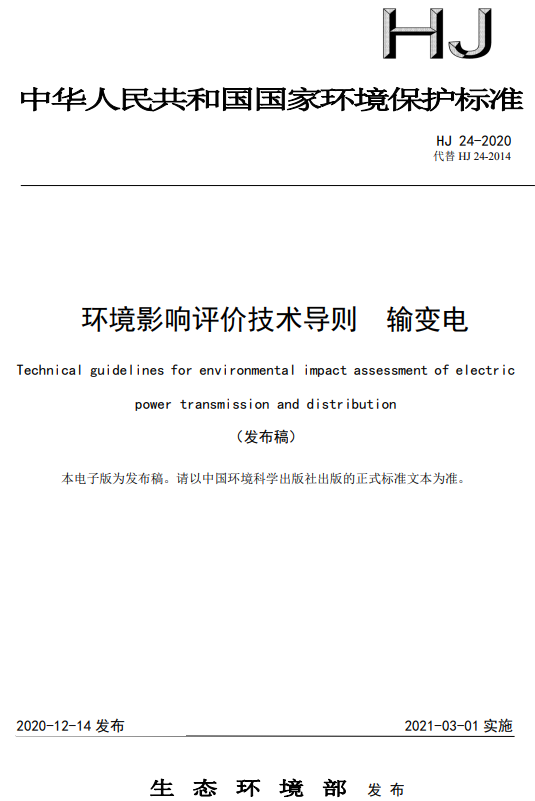 環(huán)境影響評(píng)價(jià)技術(shù)導(dǎo)則 輸變電 HJ 24-2020