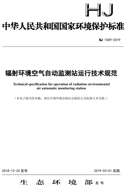 原文下載:輻射環境空氣自動監測站運行技術規范 HJ 1009-2019