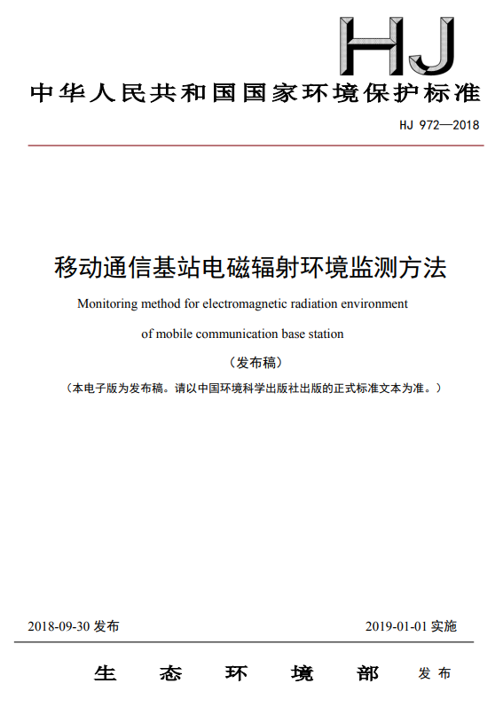 原文下載:移動通信基站電磁輻射環境監測方法 HJ 969-2018