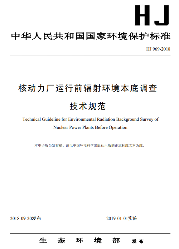 原文下載:核電廠運行前輻射環境本底調查技術規范 HJ 969-2018